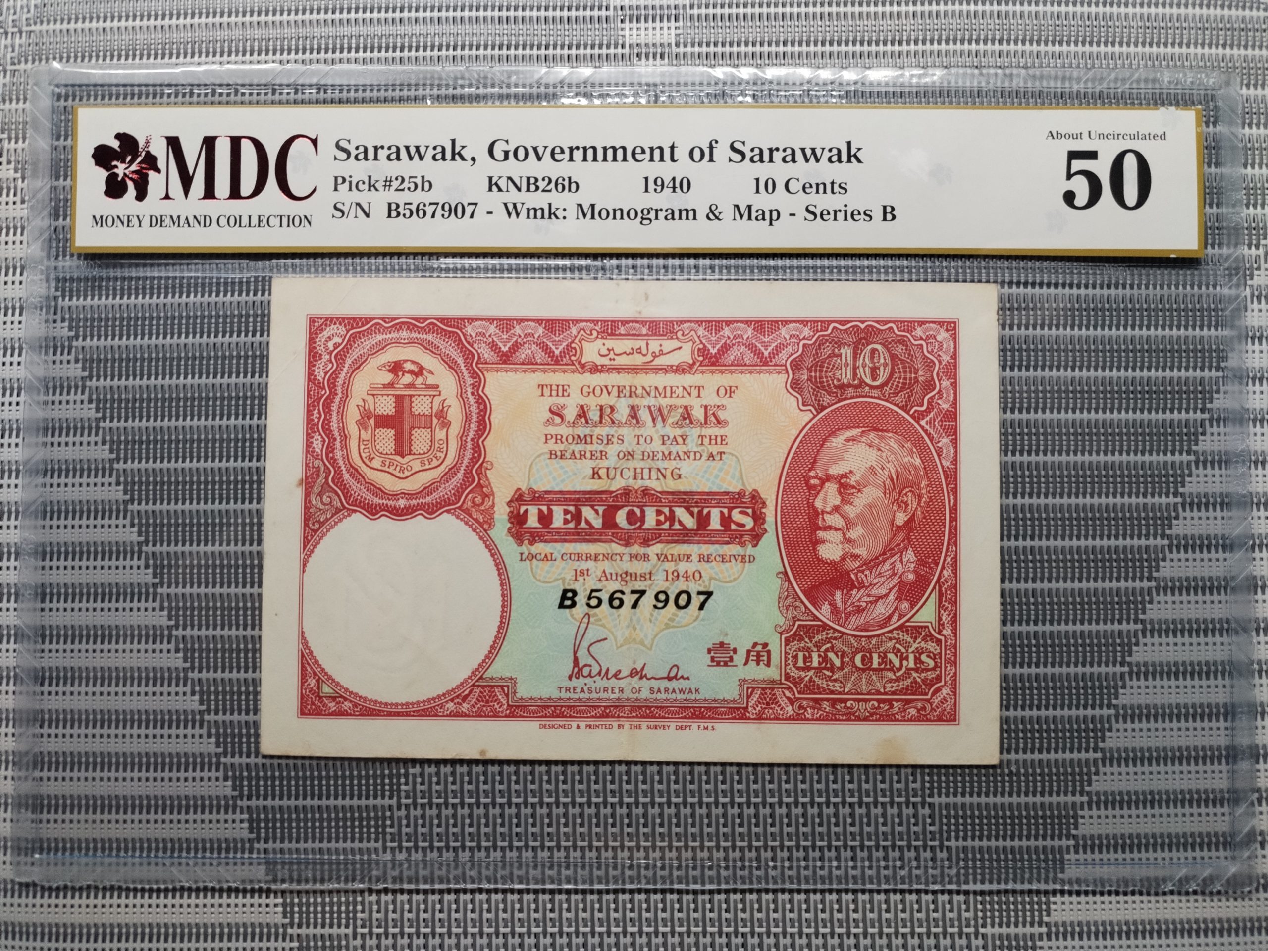 1940 Sarawak, Government of Sarawak 10 Cents《 MDC Graded 50 》