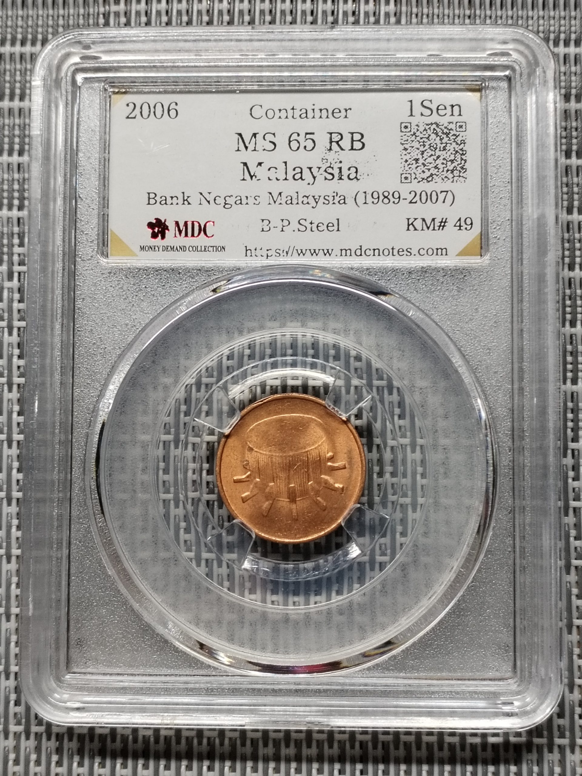 2006 Malaysia 1 Sen ” Container” 《 MDC Graded MS 65 RB 》