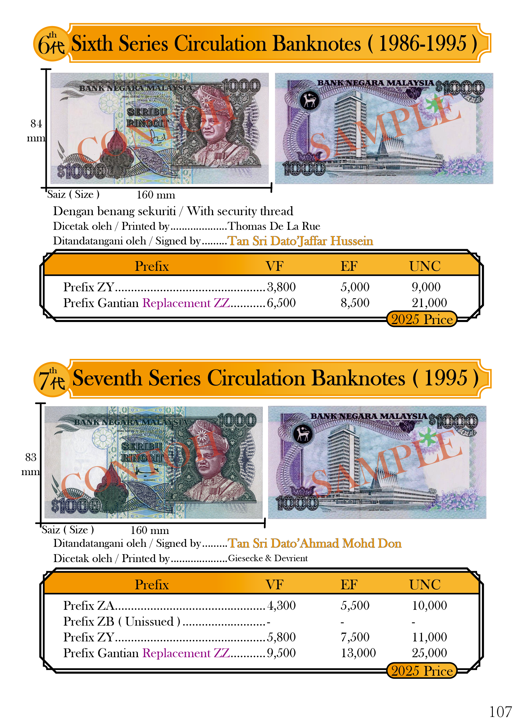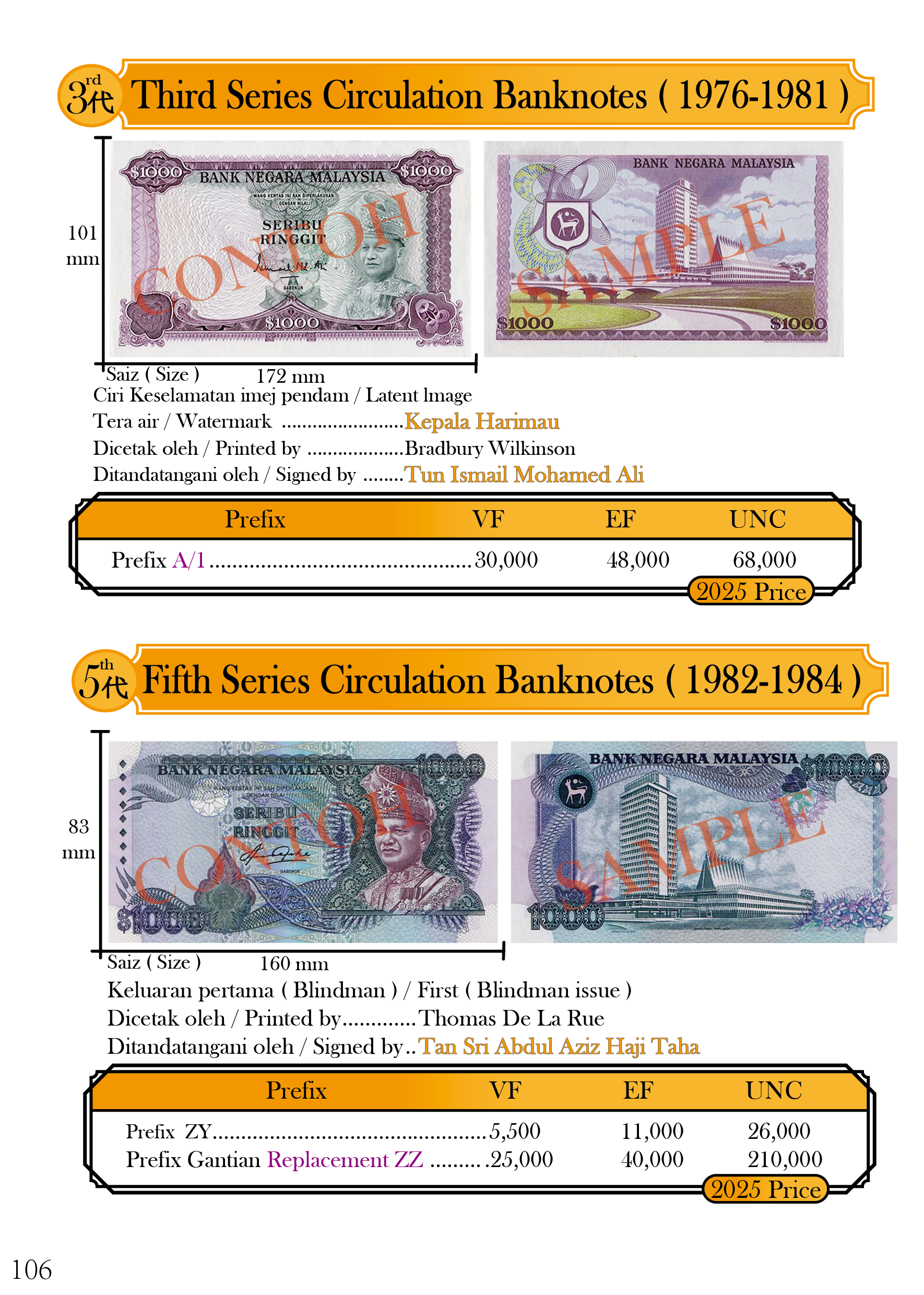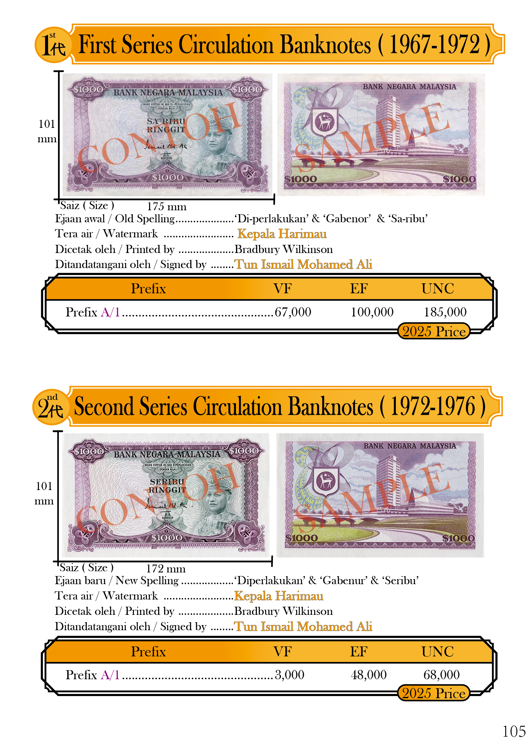 / Katalog Ringkas Matawang Malaysia / Brief Catalogue of Malaysia Currencies 1000 Ringgit