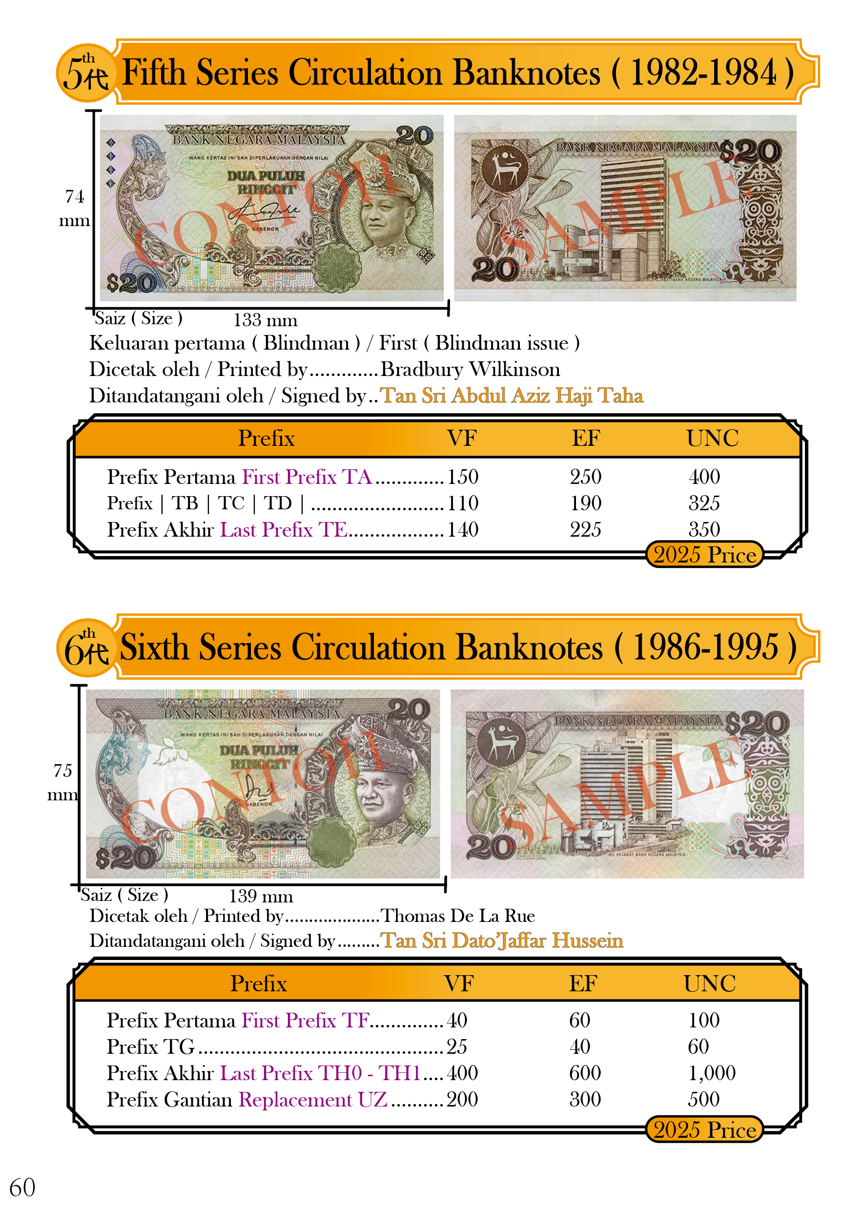 Katalog Ringkas Matawang Malaysia / Brief Catalogue of Malaysia Currencies 20 Ringgit