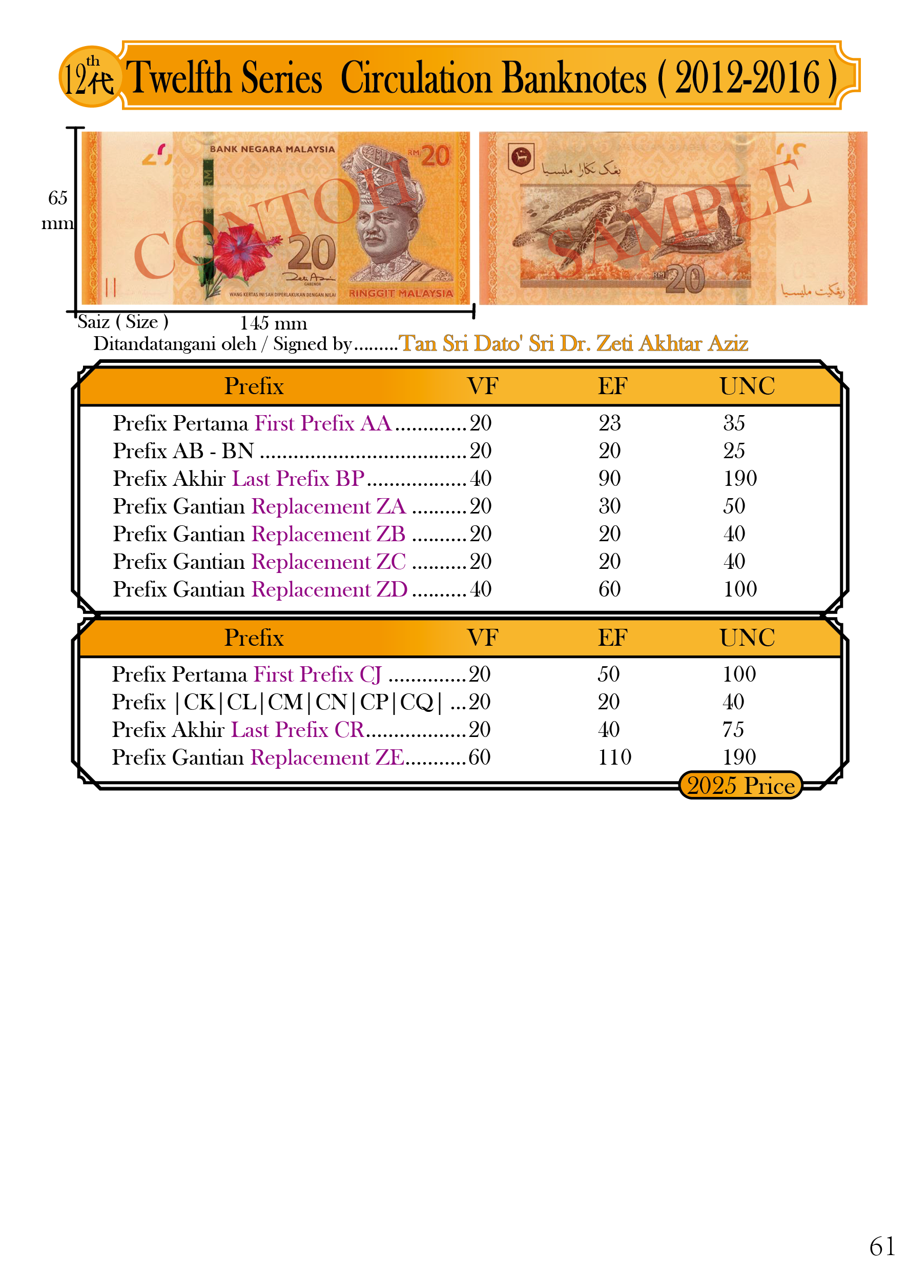/ Katalog Ringkas Matawang Malaysia / Brief Catalogue of Malaysia Currencies 20 Ringgit
