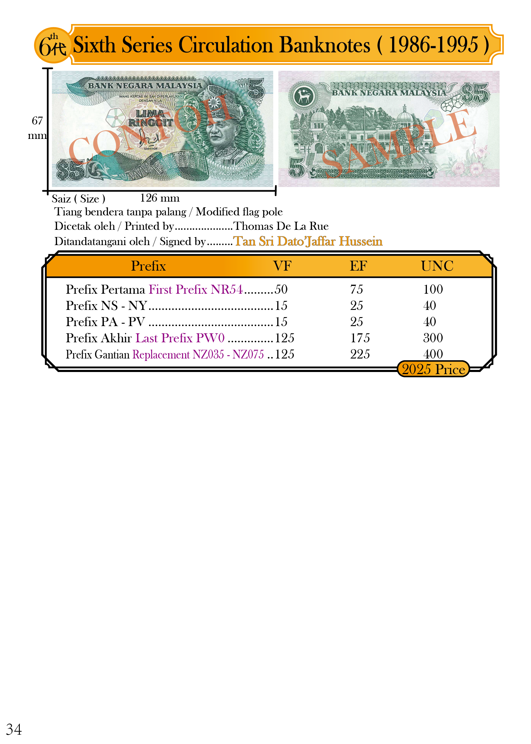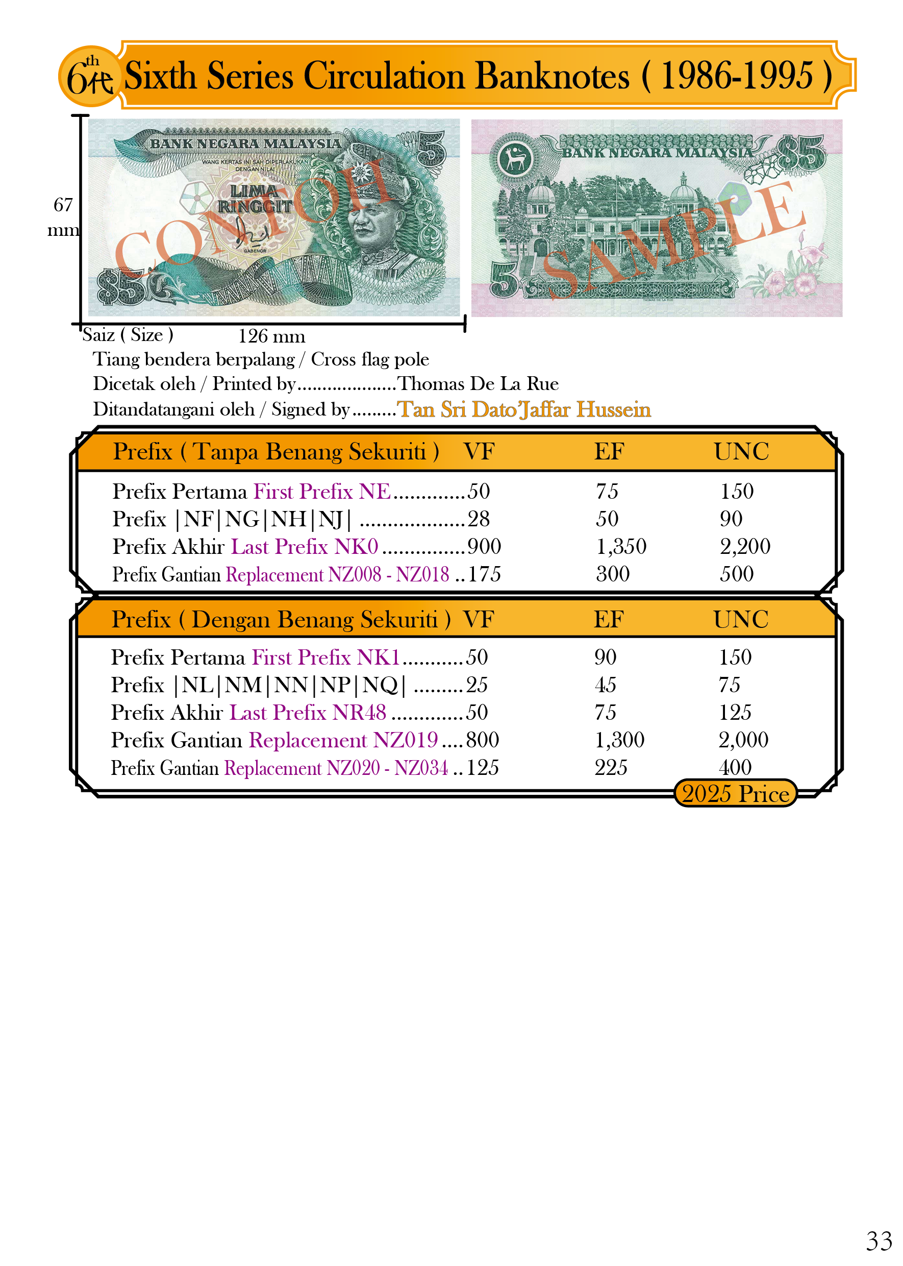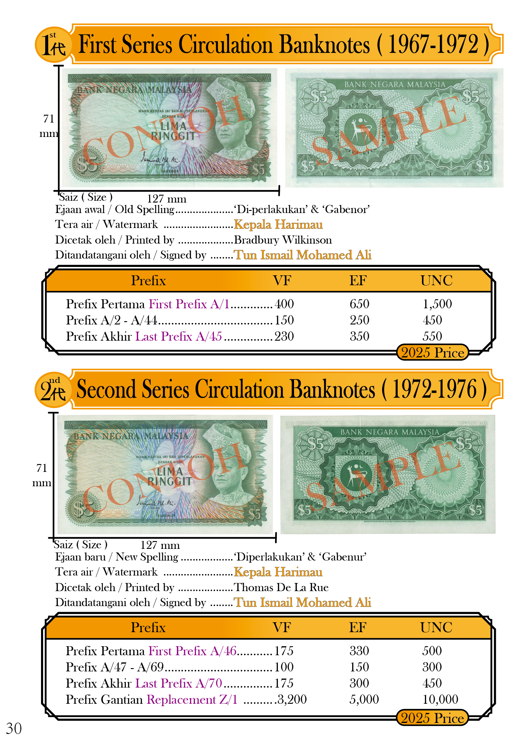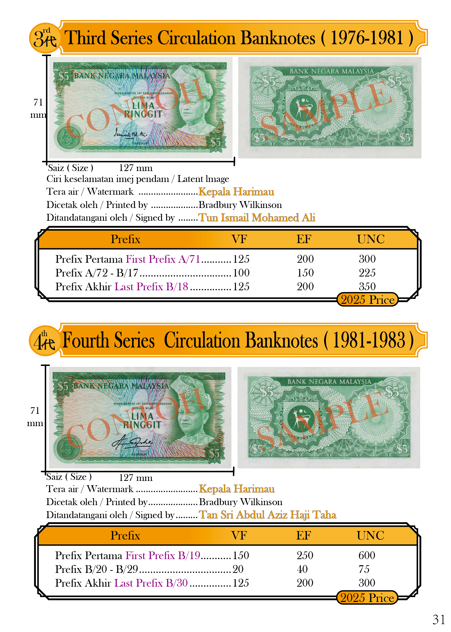 Katalog Ringkas Matawang Malaysia / Brief Catalogue of Malaysia Currencies 5 Ringgit
