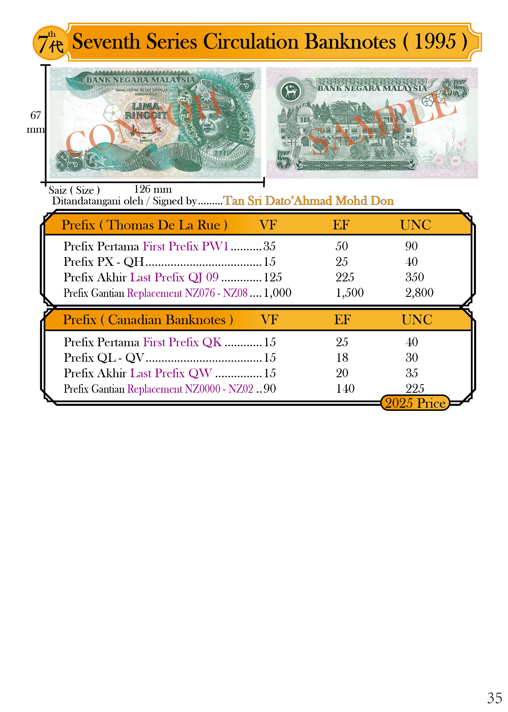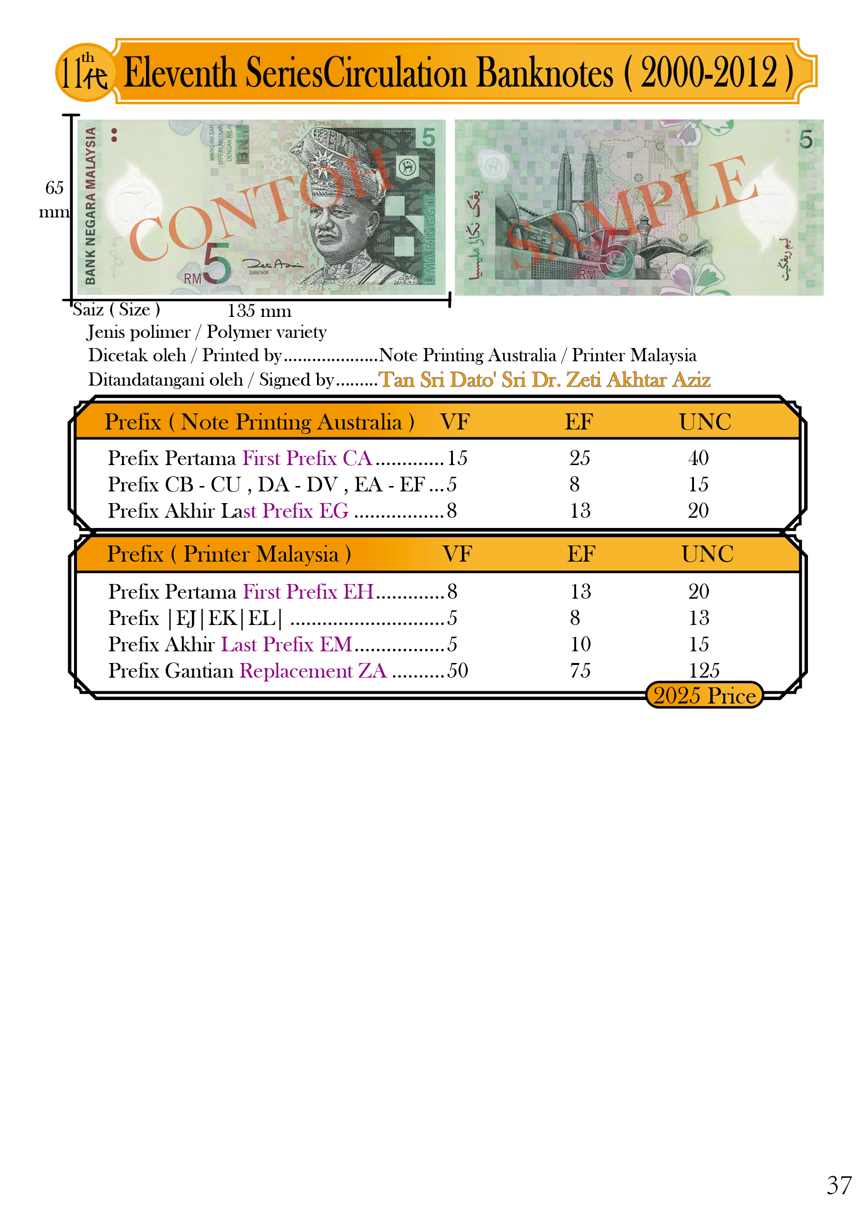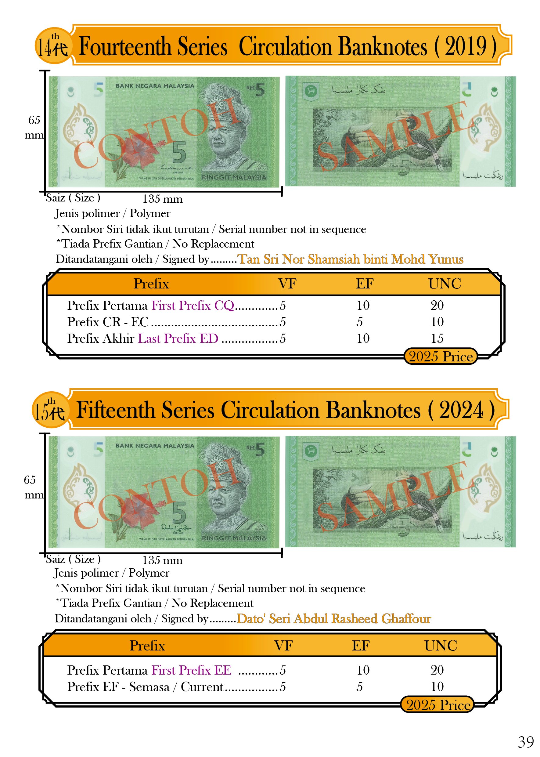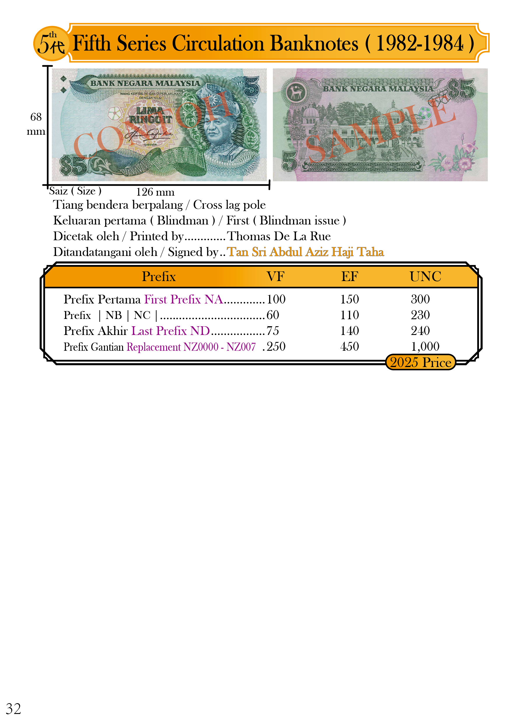 / Katalog Ringkas Matawang Malaysia / Brief Catalogue of Malaysia Currencies 5 Ringgit