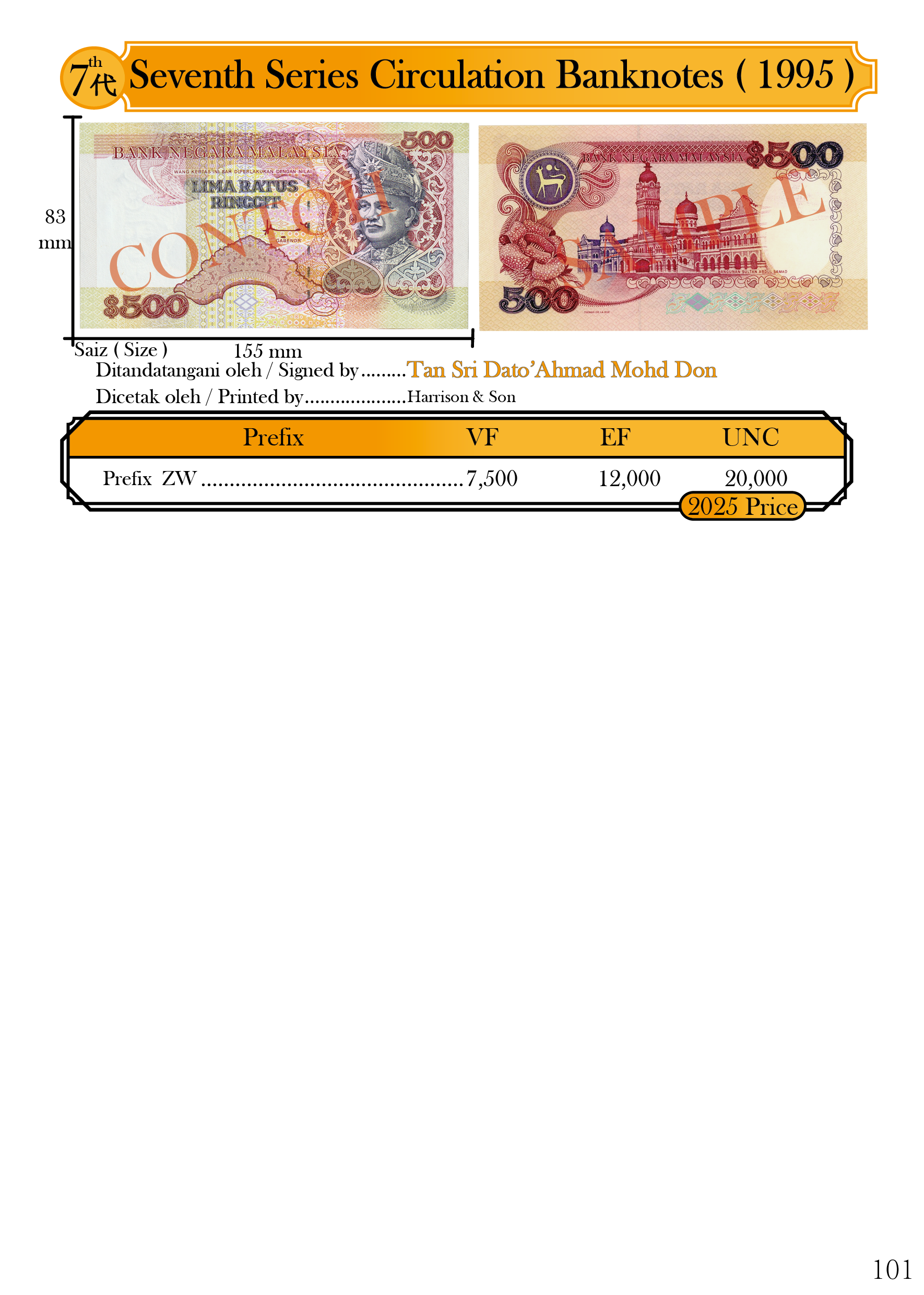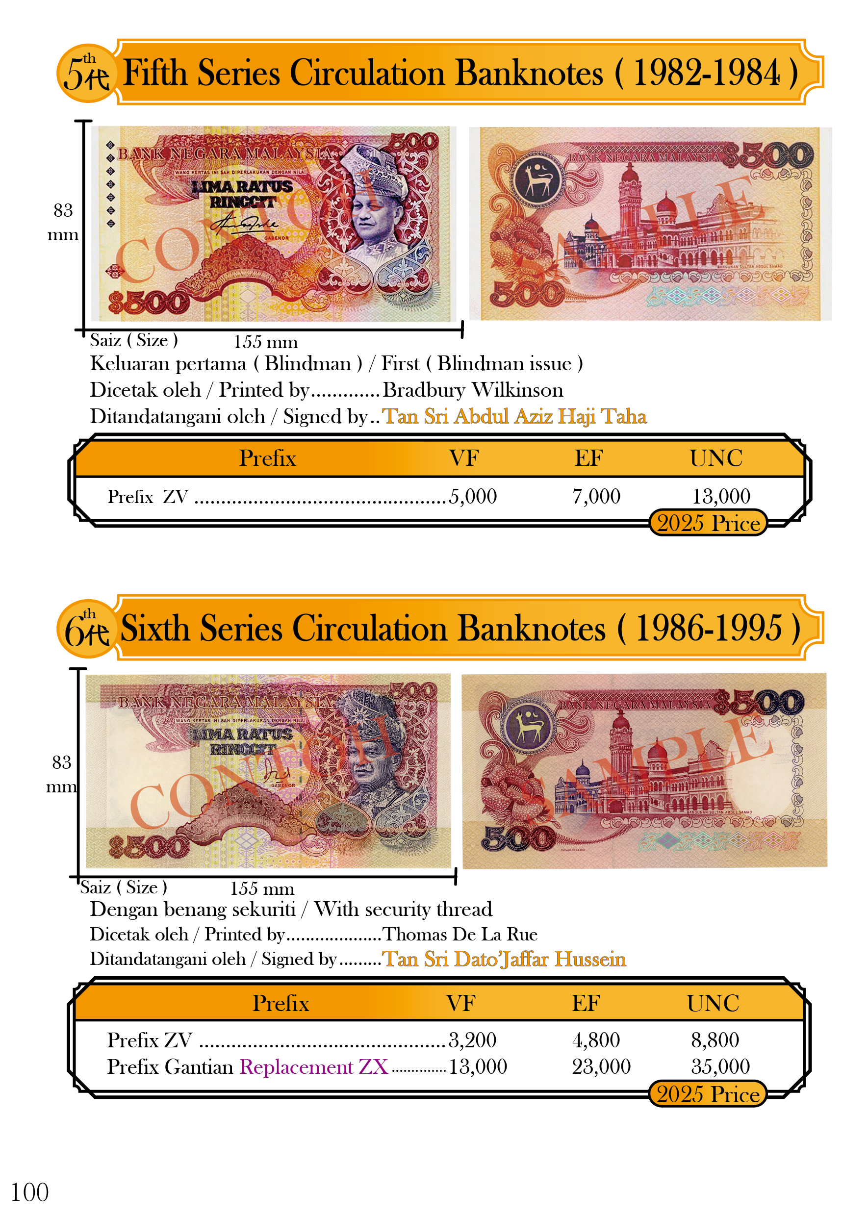 / Katalog Ringkas Matawang Malaysia / Brief Catalogue of Malaysia Currencies 500 Ringgit